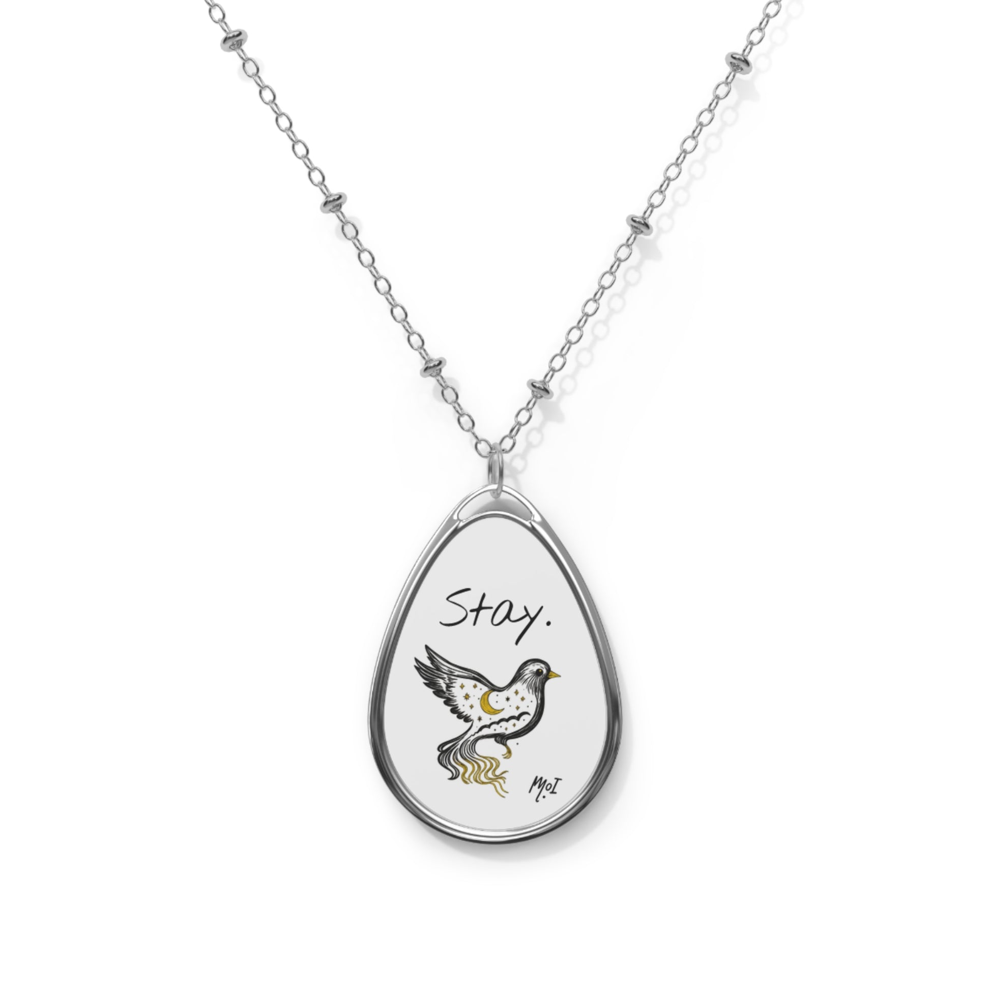 Stay Inspired Bird Necklace, Mental Health Awareness Jewelry, Celestial Pendant Gift, Unique Oval Keepsake